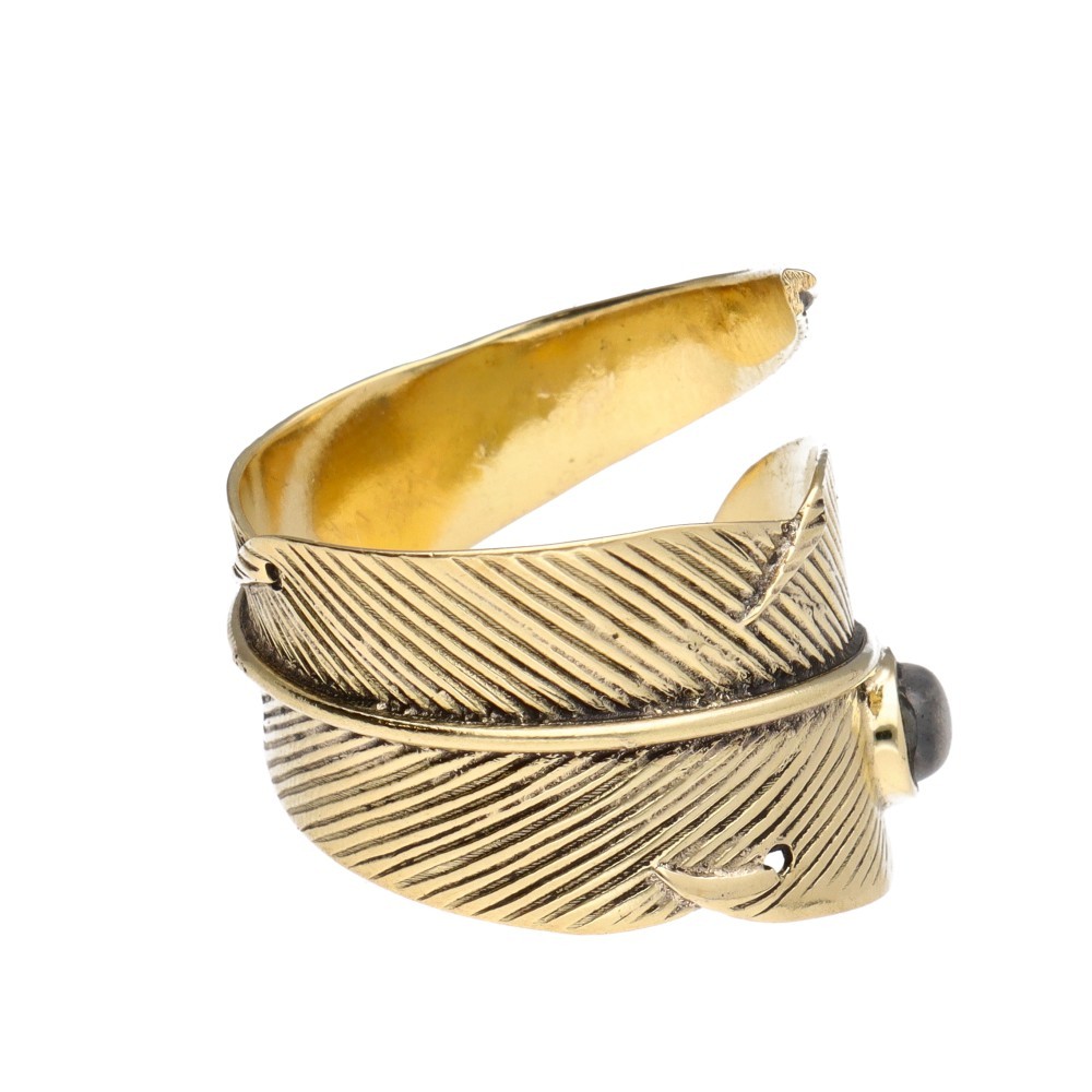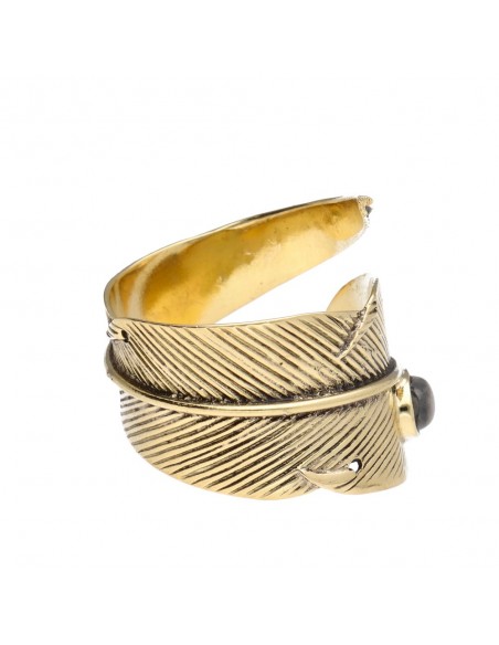 Adjustable Bronze Feather Ring with Labradorite - 14.1-