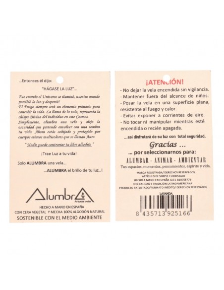 Elaborated with the perfect combination of grass and color so that the energy of its light radiates and releases in the being and its environment the necessary element or purpose that you want to achieve. These also come with a manual of practical and simple instructions as well as the prayer to be recited at the time of lighting the flame.