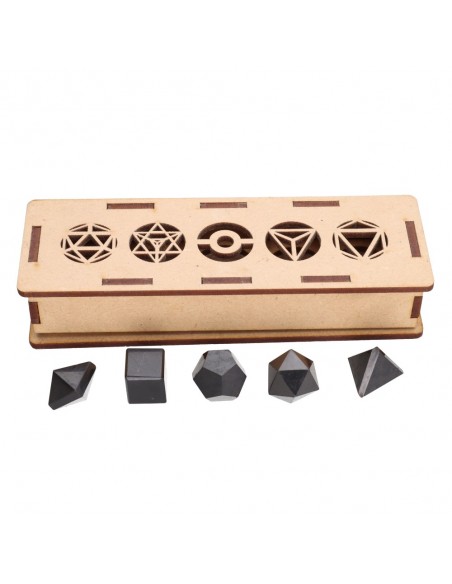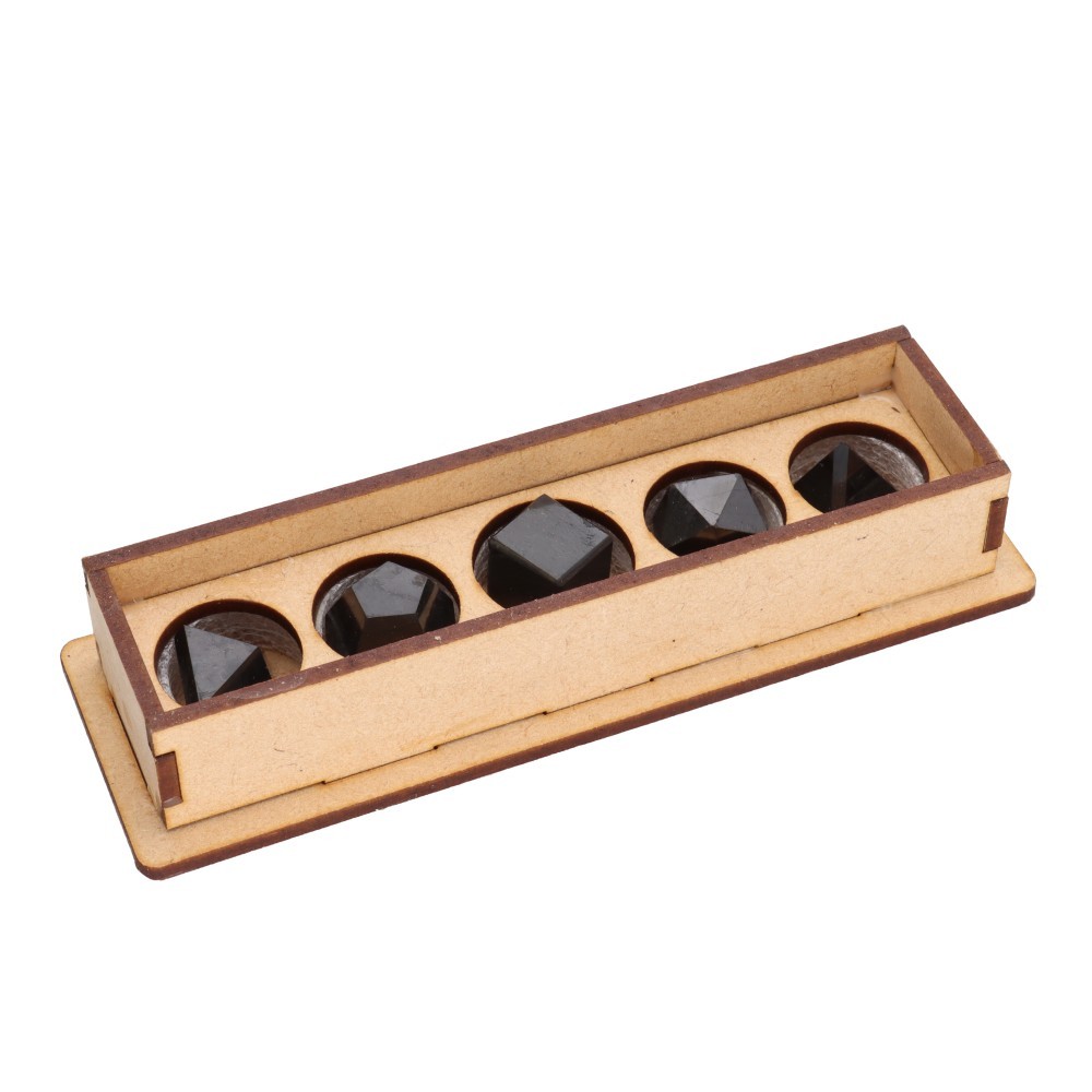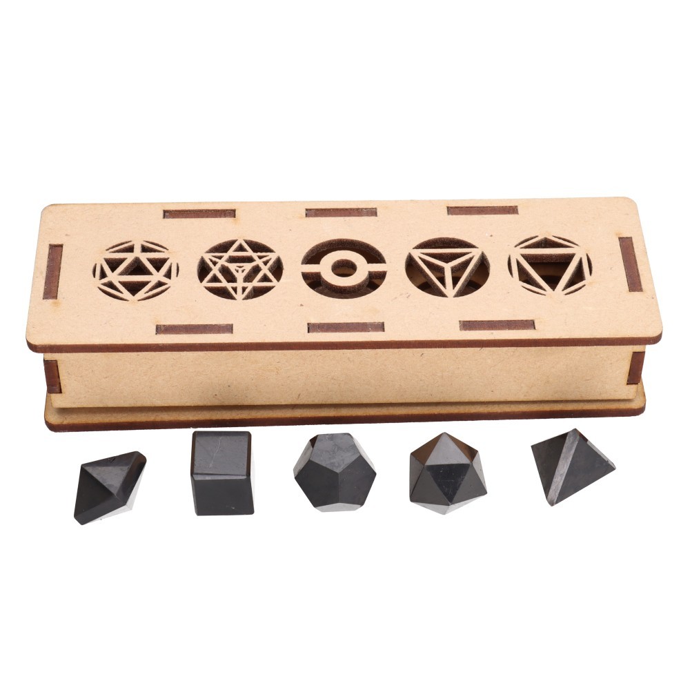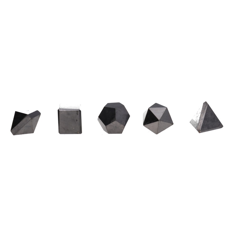 Set of carved minerals representing the 5 platonic forms/elements: