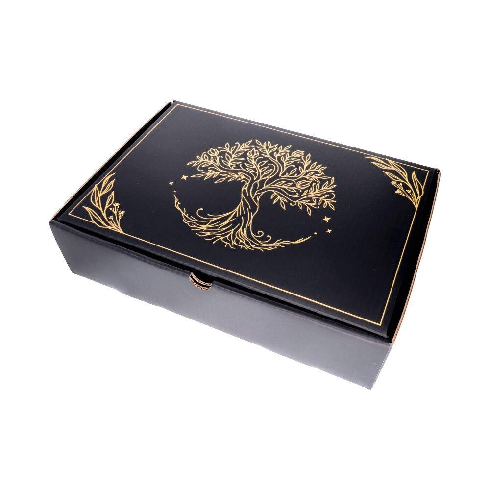 Black cardboard box with Tree of Life drawing