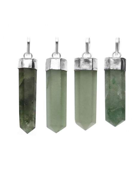 Silver Plated Green Quartz Point Pendant