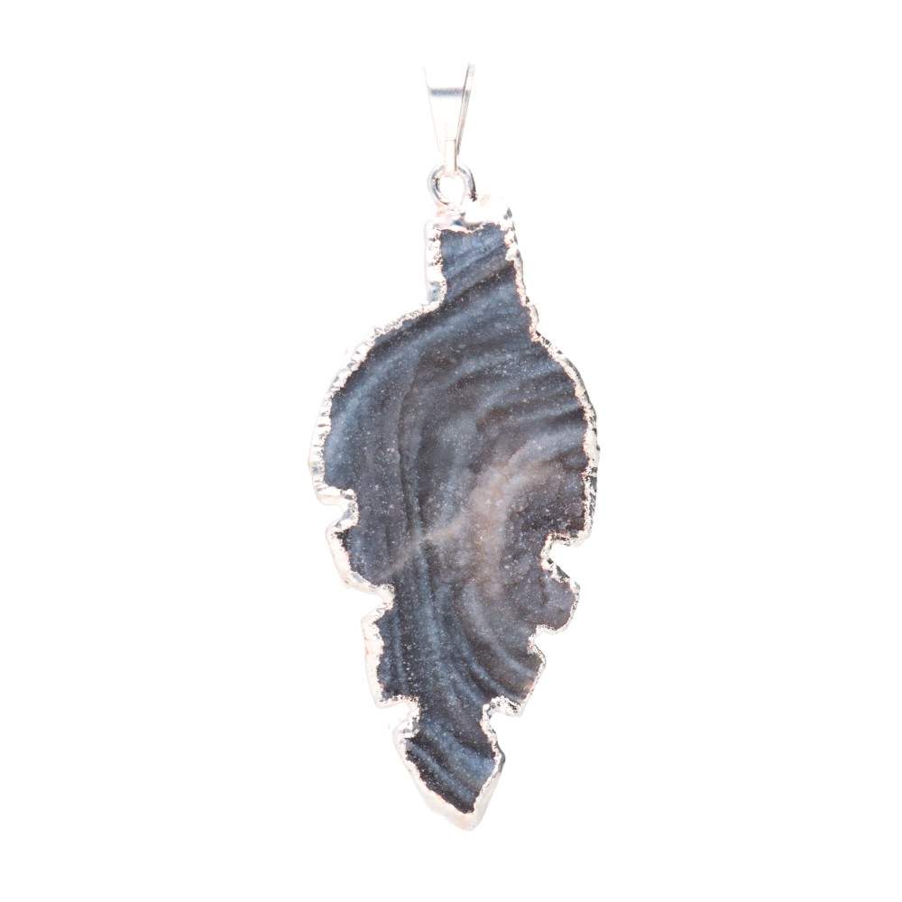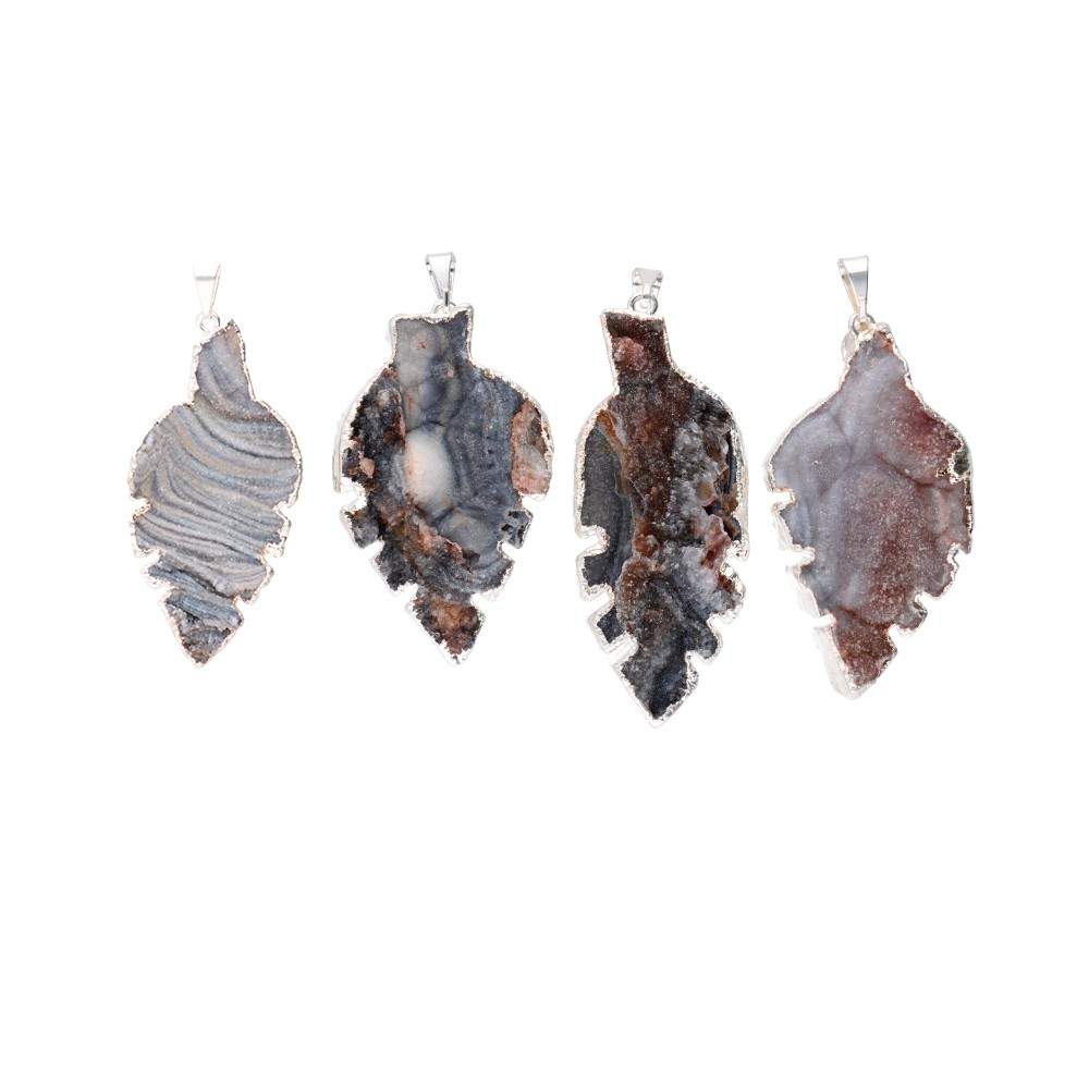 Silver Plated Rough Crystallized Chalcedony Leaf Pendant
