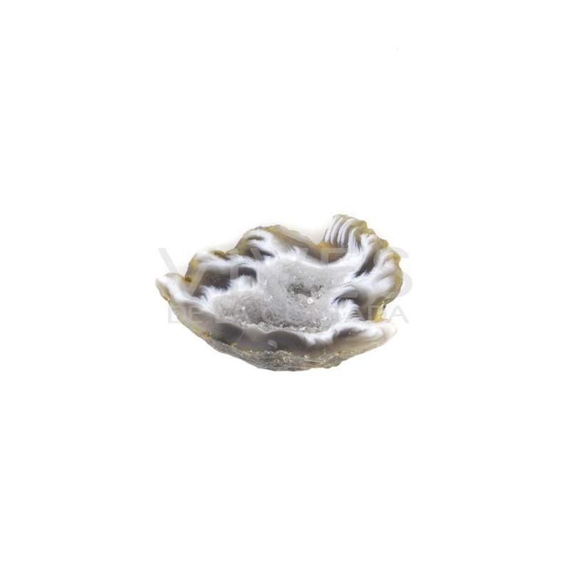 Agate is a microcrystalline variety of the quartz group, a type of chalcedony of various colors that usually presents chromatic bands. There are many types of agate, its color depends on the different materials it may contain. The most abundant are gray, but we also find them in yellow, orange, white, blue, brown and pink.