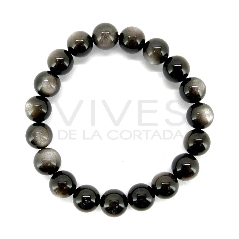 Bracelet d'obsidienne argentée 10mm