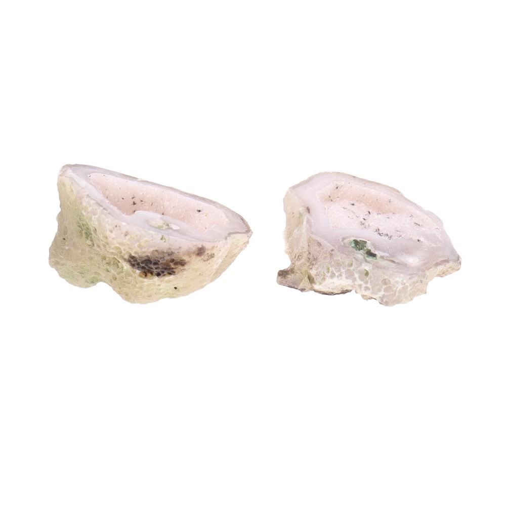 À l'état naturel, l'agate se présente généralement sous forme d'inclusions dans les cavités ovoïdes ou sphériques des roches volcaniques. Lorsqu'une poche d'agate est ouverte, des cristallisations de quartz, d'améthyste ou de calcite apparaissent généralement à l'intérieur.