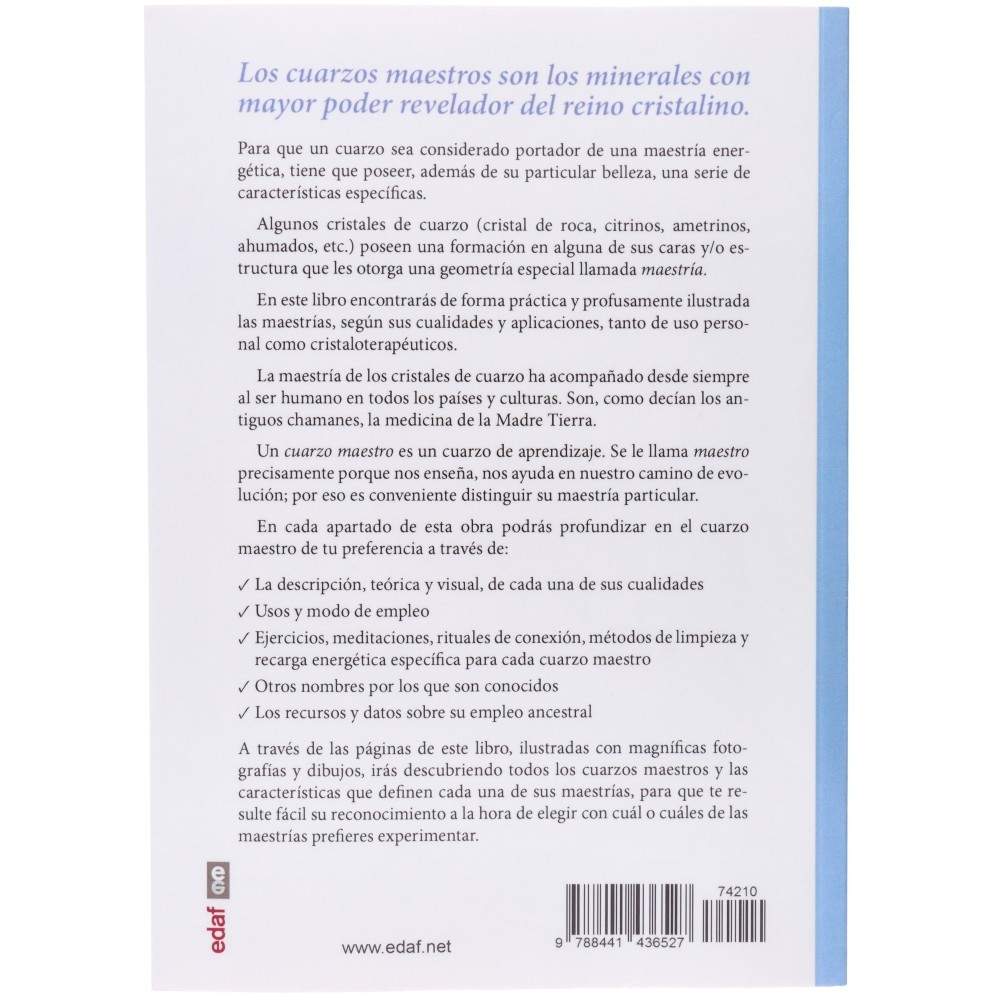 Dans ce livre, vous trouverez, de manière pratique et abondamment illustrée, les maîtrises selon leurs qualités et leurs applications, tant pour un usage personnel que cristallothérapeutique.