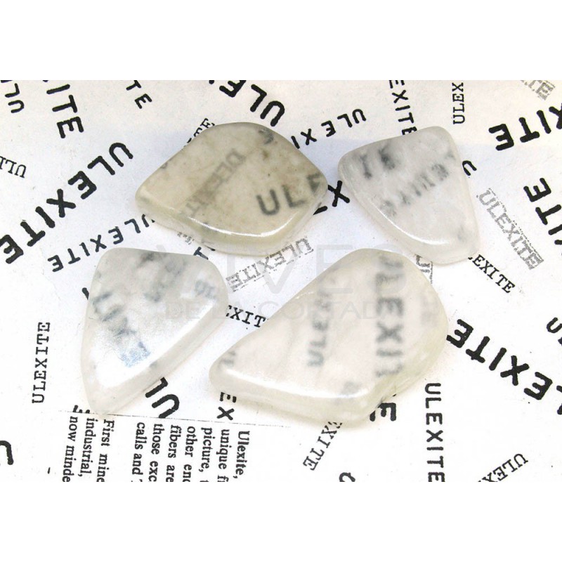 También se la conoce como “piedra televisión”, nombre que le dió el químico alemán George Ludwing Ulex (1811-1883) por tener la propiedad de “transmitir” imágenes. Si se pone una ulexita de extremos aplanados y pulidos sobre una imagen, esta funcinará como fibra óptica natural, mostrando la imagen en el extremo opuesto.