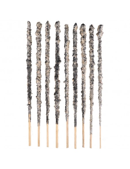 Feito com resina de incenso branco, carvão natural, sal, agentes aglutinantes naturais